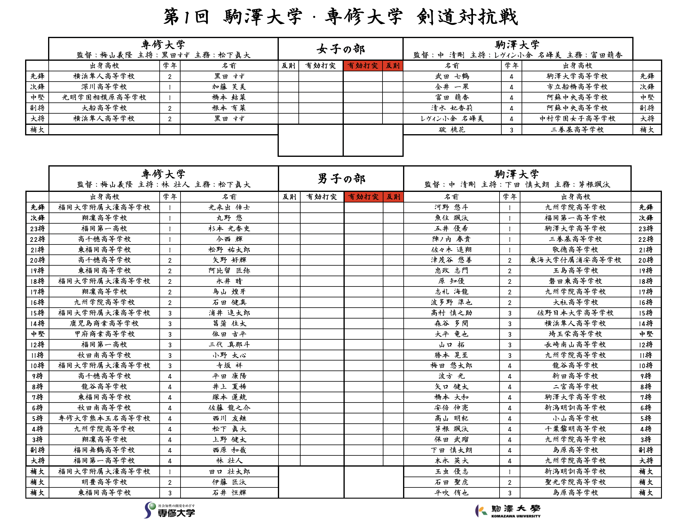 また、審判員にご協力を頂いた先生方、後援頂いた竹友会、鳳剣会の皆様、協賛して頂いた駒澤大学剣道部OBの先輩、東洋水産剣道部様、誠に有難う御座います。